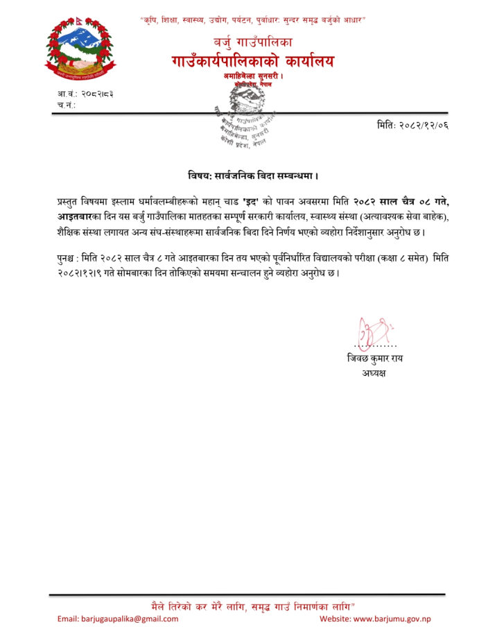 " कृषि, शिक्षा, स्वास्थ्य, उद्याेग, पर्यटन, पुर्वाधार: सुन्दर, समृद्ध बर्जुकाे अाधार "
