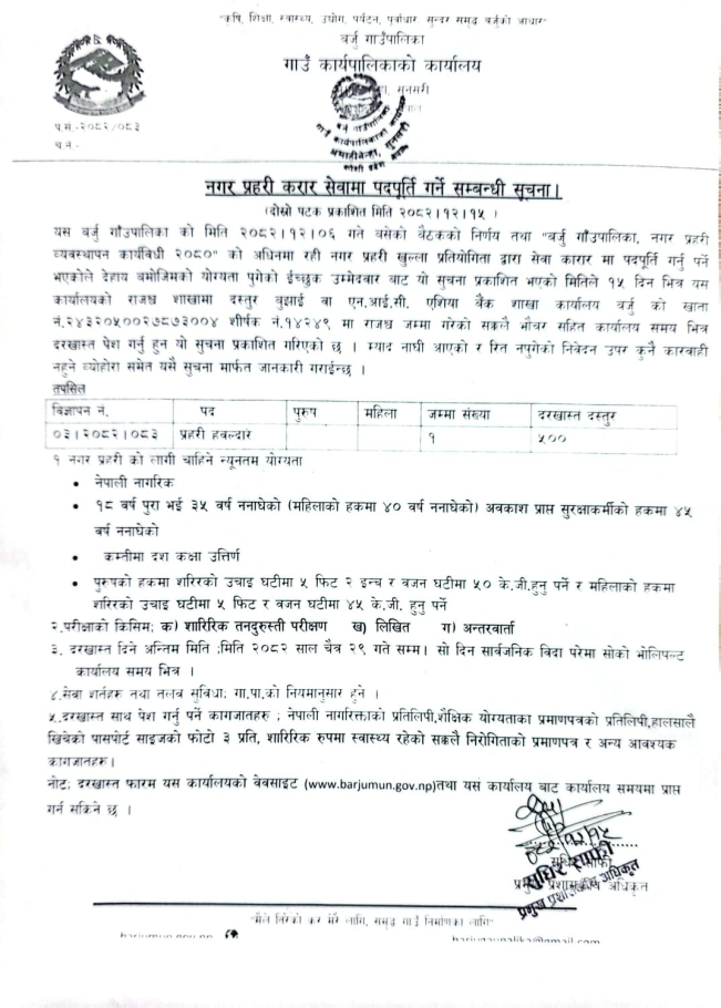नगर प्रहरी करार सेवामा पदपुर्ति गर्ने सम्बन्धी सूचना